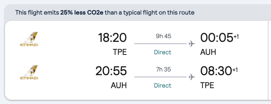 訂單一:台北/阿布達比(TPE/AUH)來回機票: