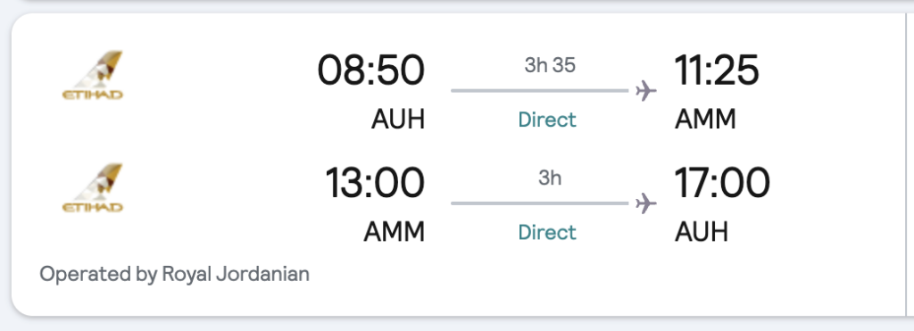 訂單二:阿布達比/ 安曼(AUH/AMM)來回機票: