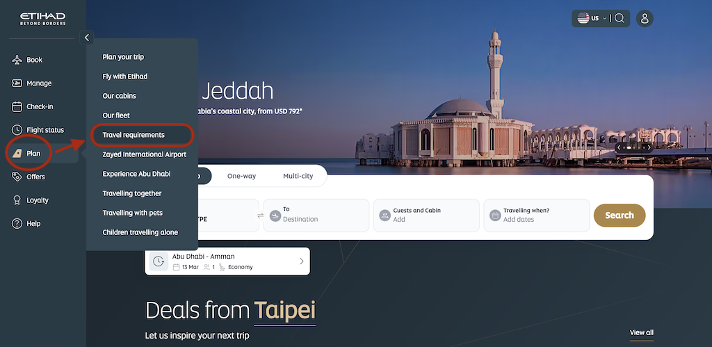 - 2. Travel requirements 的頁面:https://www.etihad.com/en-us/plan/travel-essentials