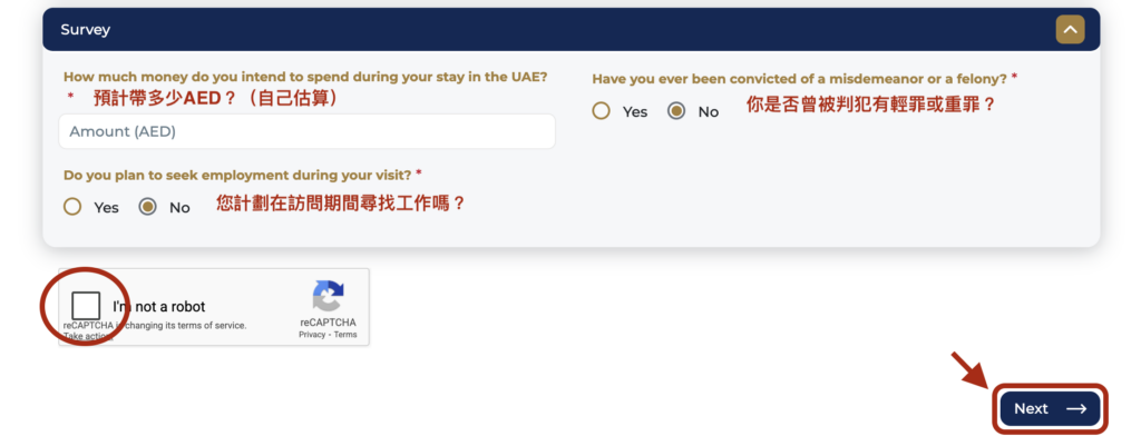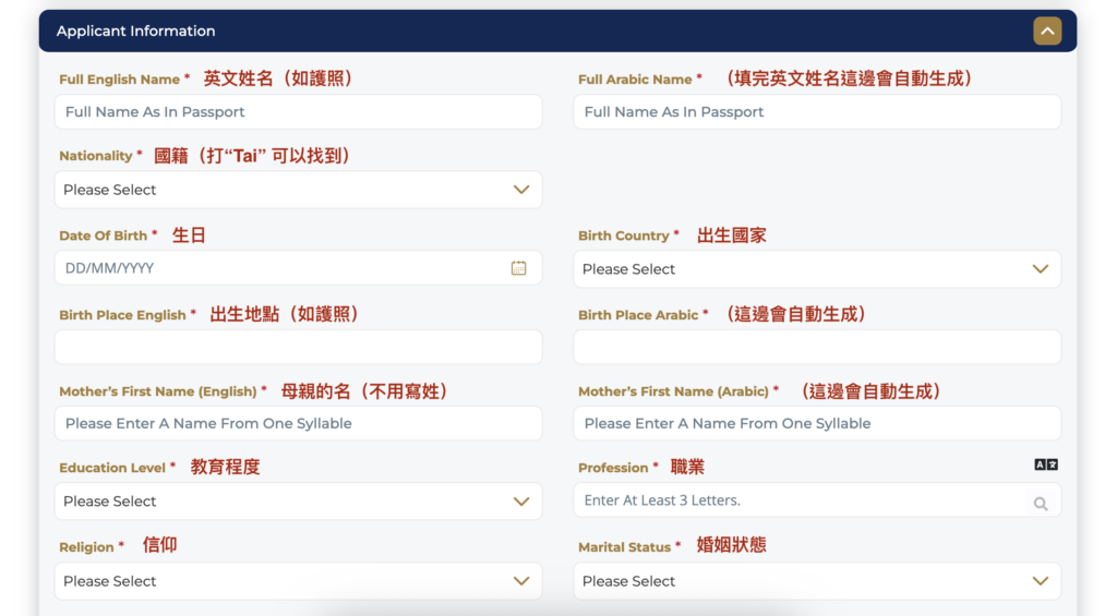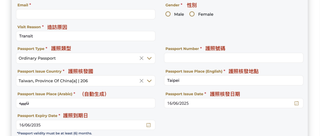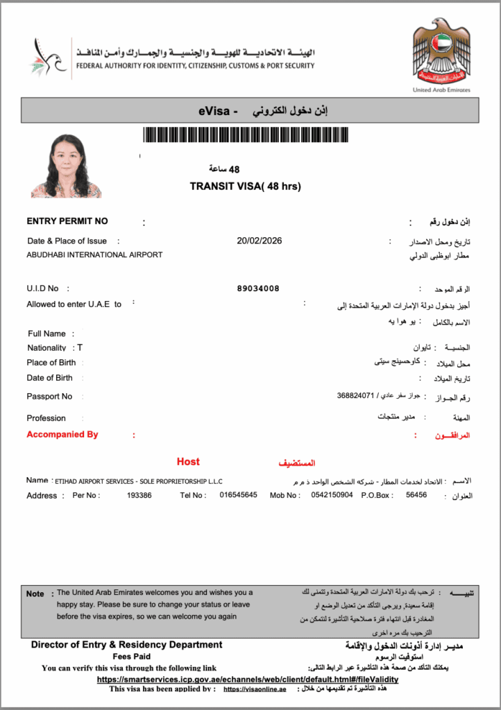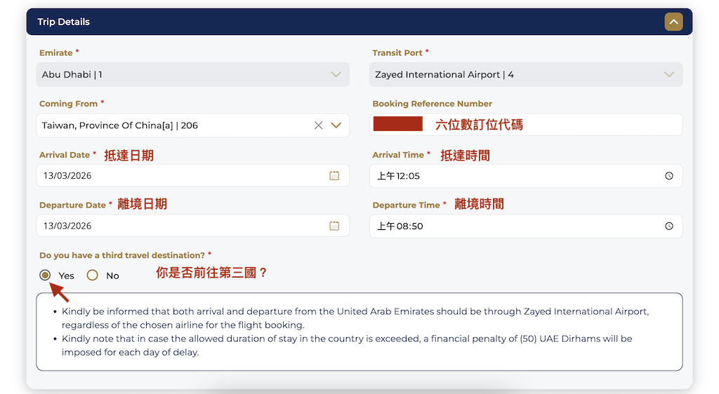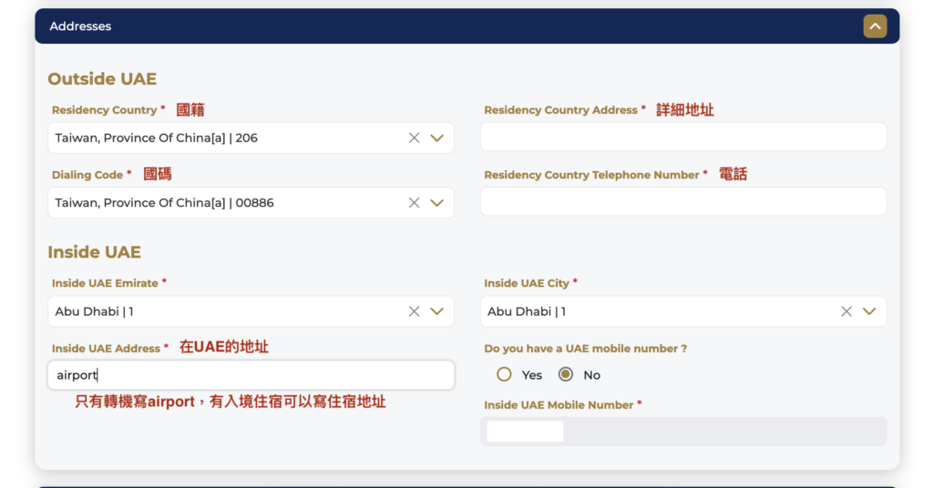 - 出發前一個月才能辦理。(如果是3/13抵達阿布達比,2/13才能填寫。)